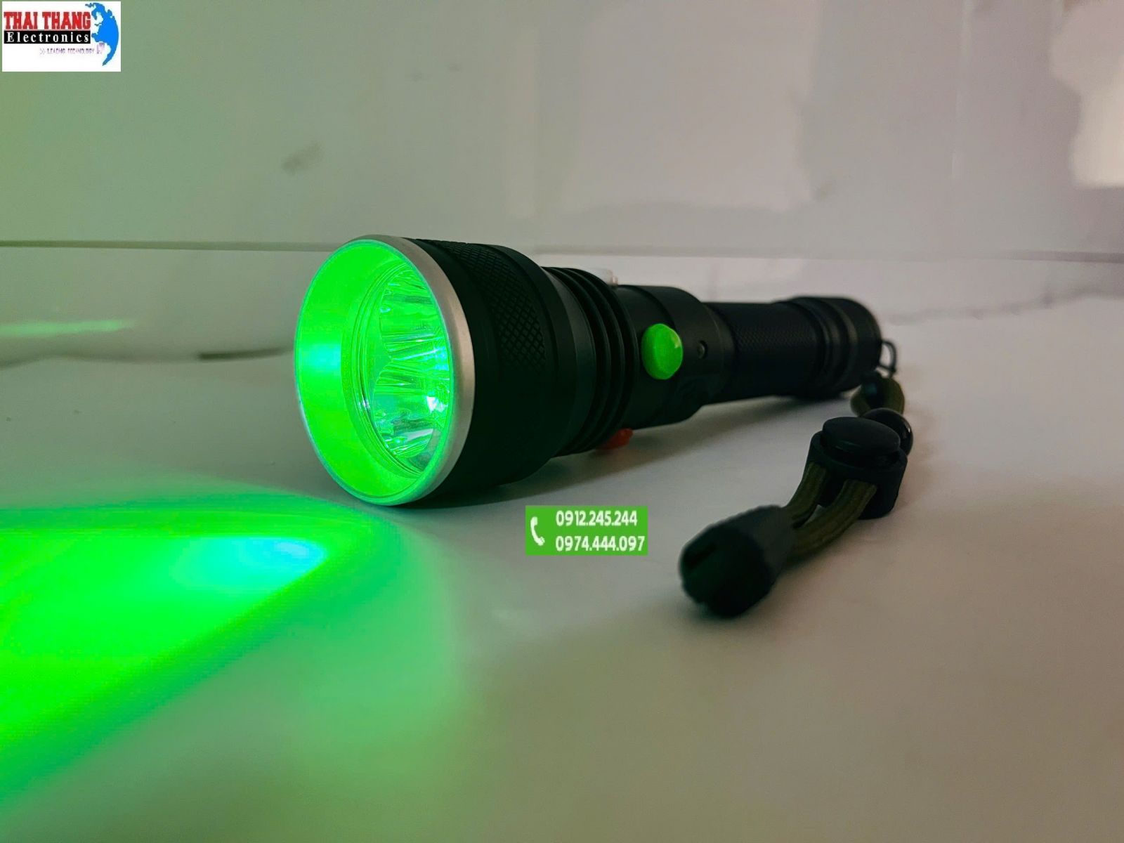 - Led xanh lá 508nm, chiếu xa 20m, 2 chế độ sáng là mạnh và nhấp nháy