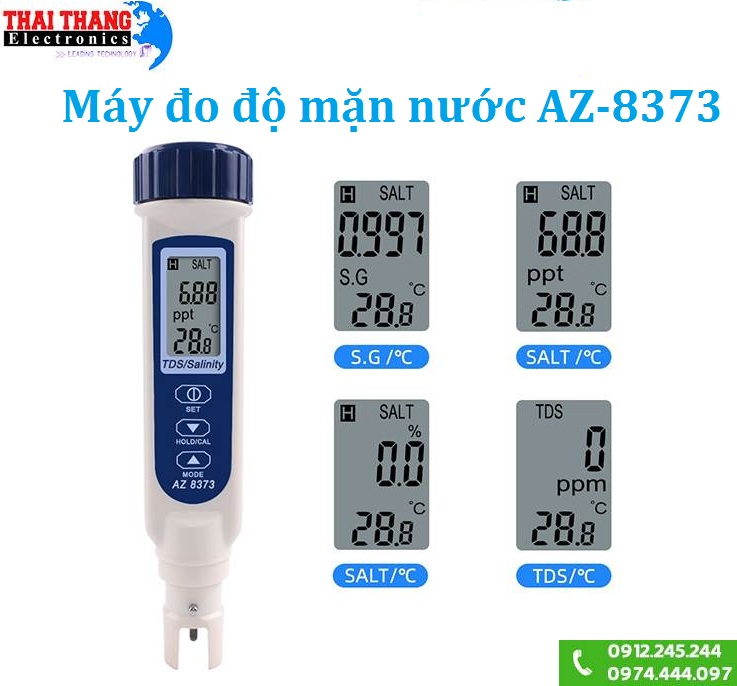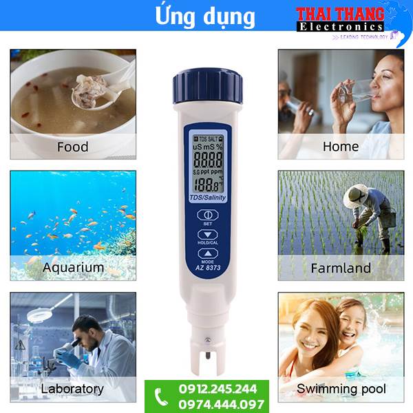 Thiết bị đo độ mặn AZ-8373 là sản phẩm nên có trong mỗi hộ gia đình đồng bằng sông cửu long hoặc các khu vực ven biển để kiểm soát tình trạng nước nhiễm mặn đảm bảo cho công tác tưới tiêu sinh hoạt trong những ngày, những tháng thủy triều dâng cao,...