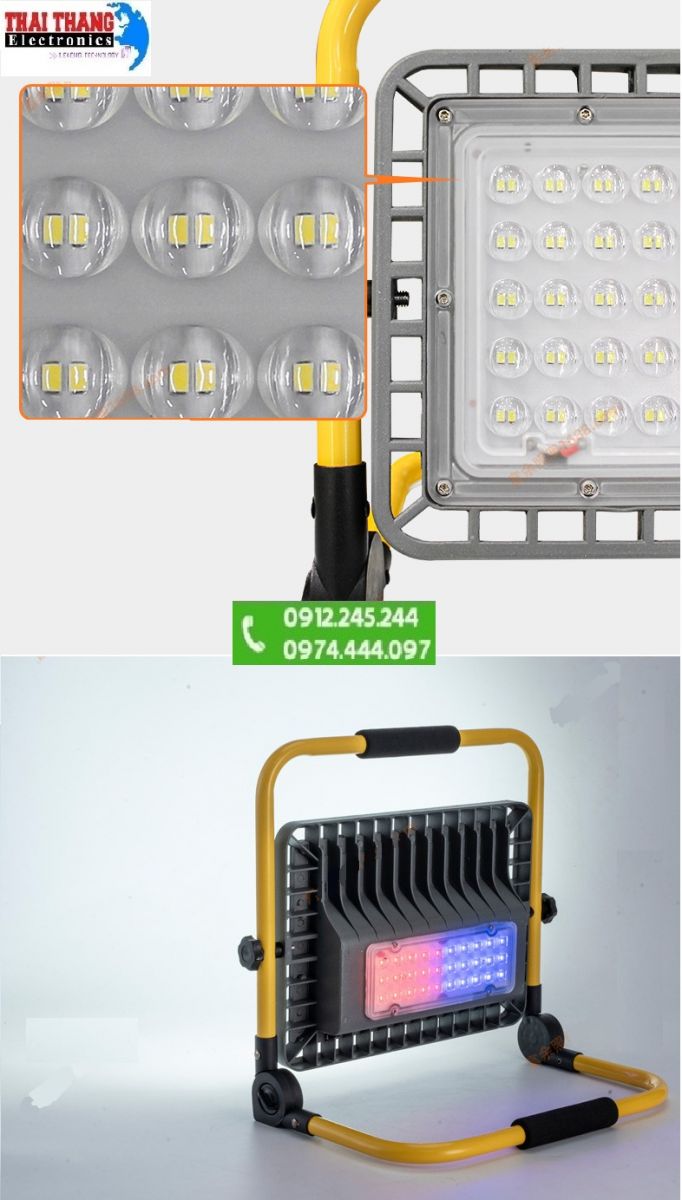 Đèn được trang bị bánh xe gắn chân đế và có thể co gập 180°, thân đèn xoay 360°, có thể tay xách hoặc di chuyển bằng chân đế, rất thuận tiện khi mang theo và sử dụng.