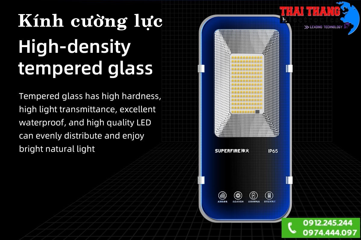 Đèn đường năng lượng mặt trời Supfire FF5-A sử dụng công nghệ cấp nguồn xung PWM tiên tiến đảm bảo đèn hoạt động tuyệt đối ngay cả trong môi trường thiếu sáng. Pin năng lượng mặt trời sẽ tự động sạc để sử dụng vào ban đêm và xả pin vào ban ngày để đảm bảo tuổi thọ cho sản phẩm. Dung lượng pin là 5000mAh cho thời gian hoạt động tối đa của đèn là 12 giờ. Chất liệu đèn làm bằng hợp kim nhôm siêu bền có thể chịu được các tác động mạnh, tất cả sẽ được gắn trên bộ khung vô cùng chắc chắn. đèn có khả năng chống nước chuẩn IP65 cho phép đèn hoạt động tốt trong thời tiết mưa gió.