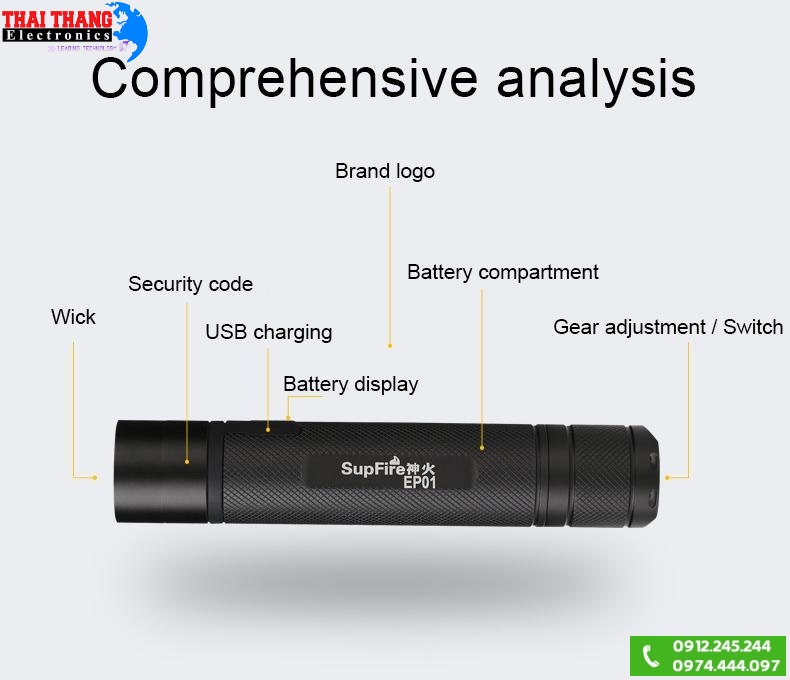 Đèn pin siêu sáng Supfire EP01 sử dụng bóng led OSRAM-GW CSHPM1.PM-LT-31-L1 cho ánh sáng trắng với cường độ sáng lên đến 324 lumens, đồng thời cho tuổi thọ đèn cao hơn. Chóa đèn làm bằng PVC tráng phủ cao cấp giúp đèn có khoảng cách chiếu xa lên đến 200m trong đêm. Đèn có 3 chế độ sáng là sáng mạnh, sáng vừa và nhấp nháy cho phép người dùng sử dụng trong nhiều mục đích công việc. Chất liệu của đèn được làm hoàn toàn bằng hợp kim nhôm cao cấp cho phép đèn chịu được va đập hoặc rơi rớt, ngoài ra đèn còn đạt tiêu chuẩn chống nước IP44 giúp đèn hoạt động tốt trong môi trường làm việc khắc nghiệt nhất.