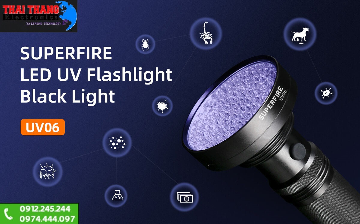 1 vài tính năng của đèn pin cực tím Supfire UV06 100 Led: