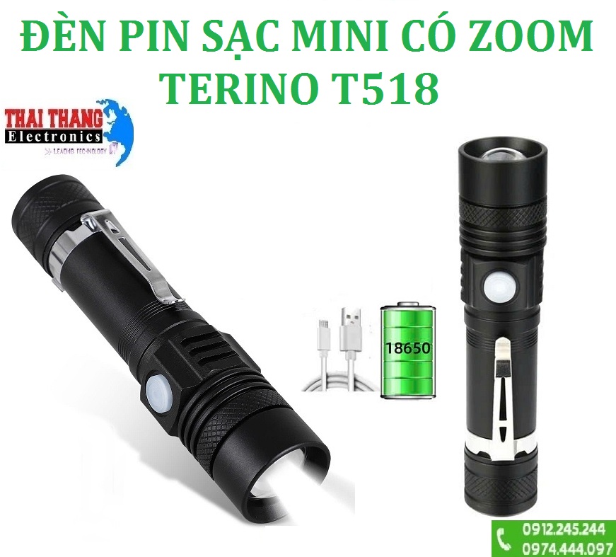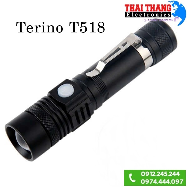 Đèn pin siêu sáng có Zoom Terino T518 sử dụng chip Led T6 cho cường độ sáng mạnh ( 800 Lumens ) với tuổi thọ bóng lên đến 100.000 giờ chiếu sáng. Đặc biệt với tính năng Zoom tụ tỏa chùm tia giúp cho đèn có khoảng cách chiếu xa đến 150m trong đêm tối. Đèn gồm 3 chế độ chiếu sáng: Sáng mạnh, yếu và nhấp nháy tùy vào nhu cầu của người dùng.