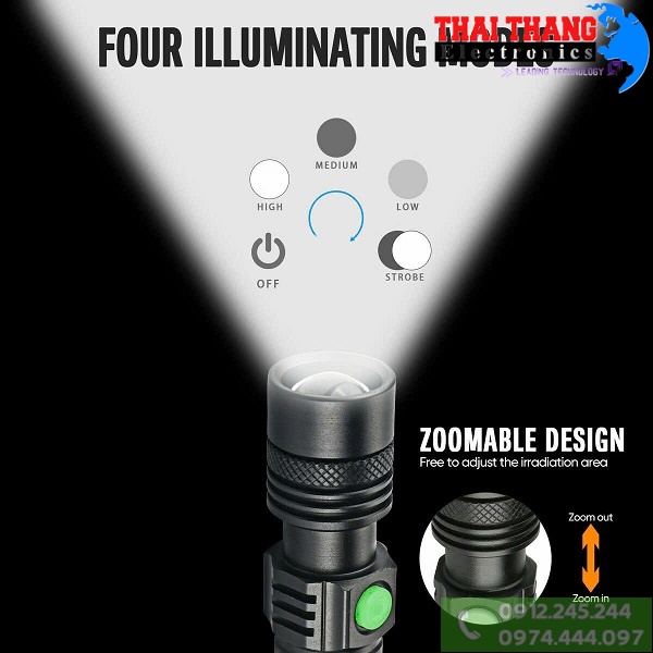 - Đầu đèn được thiết kế Zoom tụ tỏa chùm tia