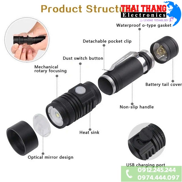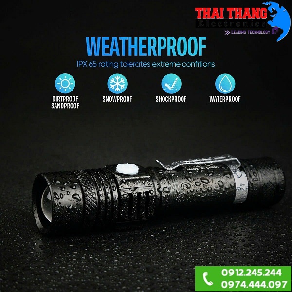 - Trang bị chip Led T6 có tuổi thọ 100000 giờ chiếu sáng