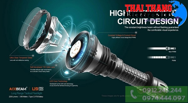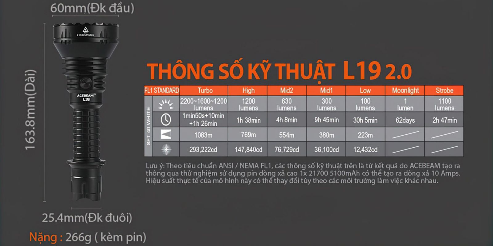 Tính năng đèn pin chiến thuật siêu sáng Acebeam L19 2.0: