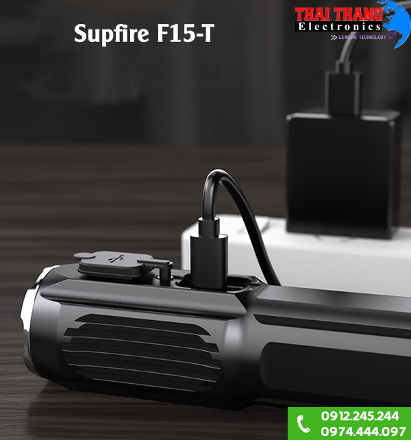 Supfire F15-T có thể chịu va đập, rơi rớt ở độ cao lên đến 1m nhờ vào chất liệu hợp kim nhôm vô cùng chắc chắn, chất liệu này cũng mang đến cho đèn trọng lượng nhẹ giúp người dùng sử dụng trog thời gian dài mà không bị mỏi tay, chuẩn chống nước IP34 cũng được trang bị cho đèn. Nguồn cung cấp cho đèn là pin dung lượng cao cho phép đèn hoạt động lâu dài. Đèn có thể sạc lại được thông qua cổng Type-C cho tốc độ sạc nhanh hơn các loại cổng sạc khác. Trên thân đèn còn trang bị thêm cổng USB cho phép đèn có thể sạc ngược lại cho các thiết bị di động khác