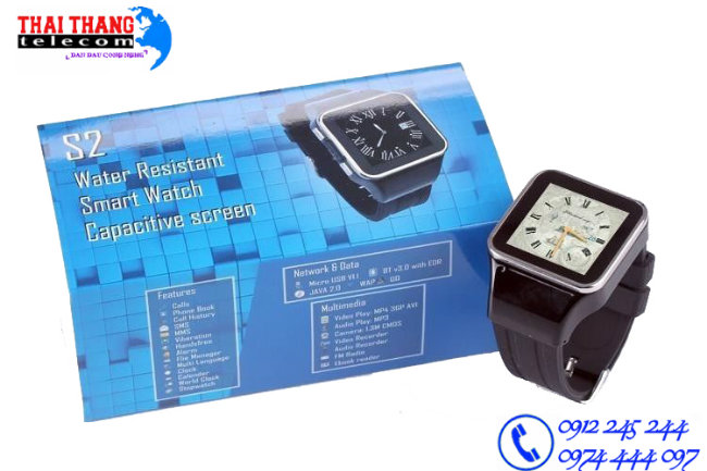 Đồng hồ điện thoại S2 có thiết kế nhỏ gọn, mỏng, trọng lượng nhẹ nhưng lại có đầy đủ tính năng của một chiếc điện thoại thông thường, có kết nối Bluetooth với chuẩn bluetooth 3.0 bạn có thể kết nối với một chiếc tai nghe bluetooth sử dụng để liên lạc hay nghe nhạc một cách thoải mái.