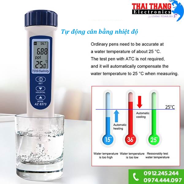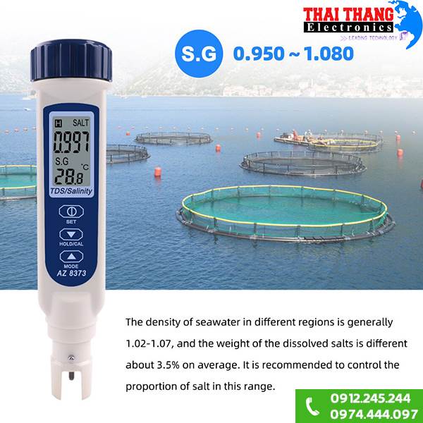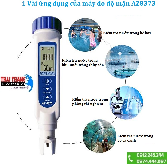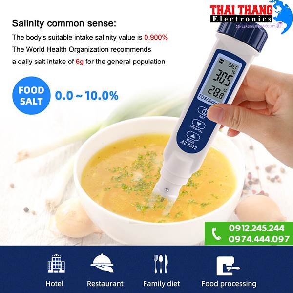 Thiết bị đo độ mặn AZ-8373 là sản phẩm nên có trong mỗi hộ gia đình đồng bằng sông cửu long hoặc các khu vực ven biển để kiểm soát tình trạng nước nhiễm mặn đảm bảo cho công tác tưới tiêu sinh hoạt trong những ngày, những tháng thủy triều dâng cao,...